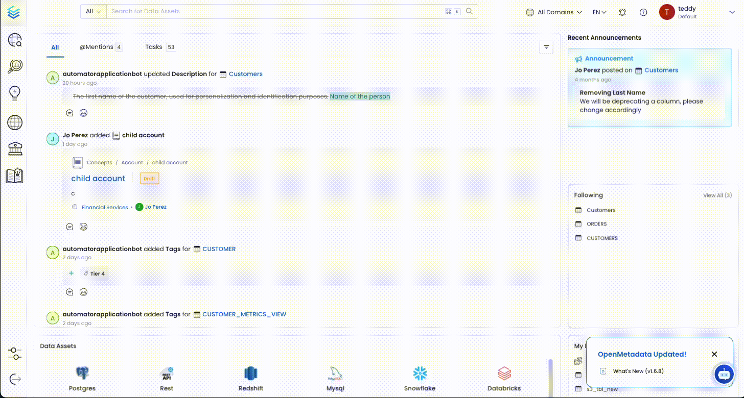 For more details about reverse metadata ingestion, visit our Reverse Metadata Documentation.